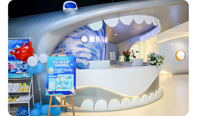德伦儿童齿科番禺市桥院位于禺山广场二楼,连接广州地铁3号线市桥站,比邻繁华的易发商业区、星海公园、多个大型社区。占地1000㎡,是一家以海洋为主题的大型口腔机构,通过家庭口腔解决方案,为儿童和成人提供高质量的儿牙、种植、正畸、全科等全方位口腔预防诊疗服务。